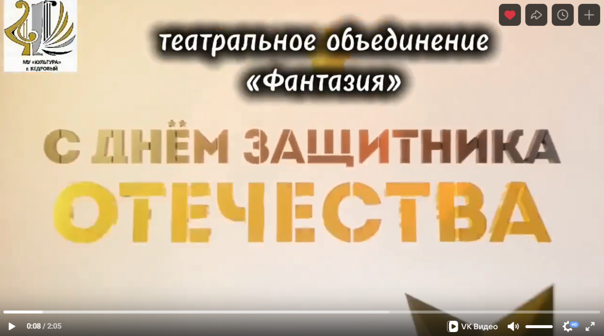 МУ "Культура" и творческое объединение "Фантазия" сердечно поздравляют всех мужчин муниципального округа Город Кедровый Томской области с Днём защитника Отечества!