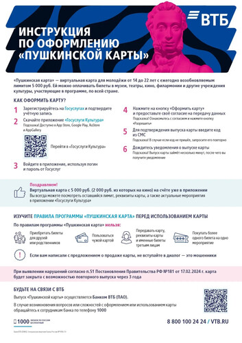 Пушкинская карта – это уникальная государственная программа, которая открывает двери в мир культуры для молодежи. С ее помощью молодые люди в возрасте от 14 до 22 лет могут бесплатно посещать музеи, театры, выставки, концертные залы и другие культурные учреждения по всей России. Это от