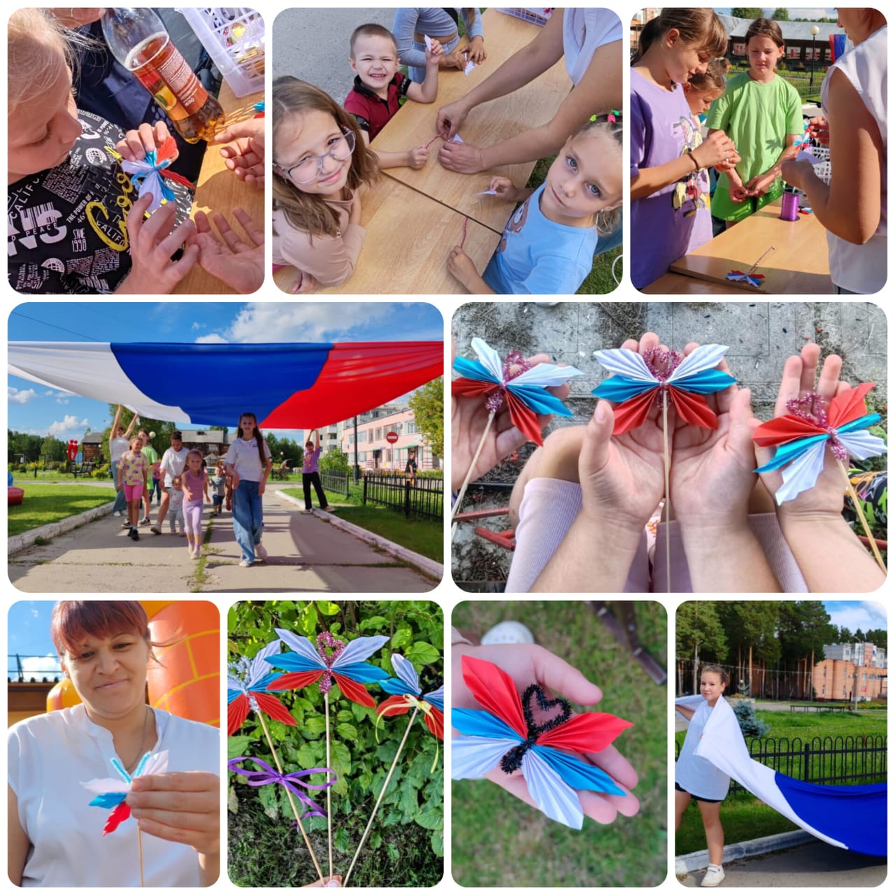 На центральной площади г. Кедрового состоялся замечательный мастер-класс для юных патриотов. Ребята с энтузиазмом мастерили симпатичных бело-сине-красных бабочек из бумаги. Было приятно видеть, как дети увлечены процессом и с гордостью несут в руках символ нашей Родины!