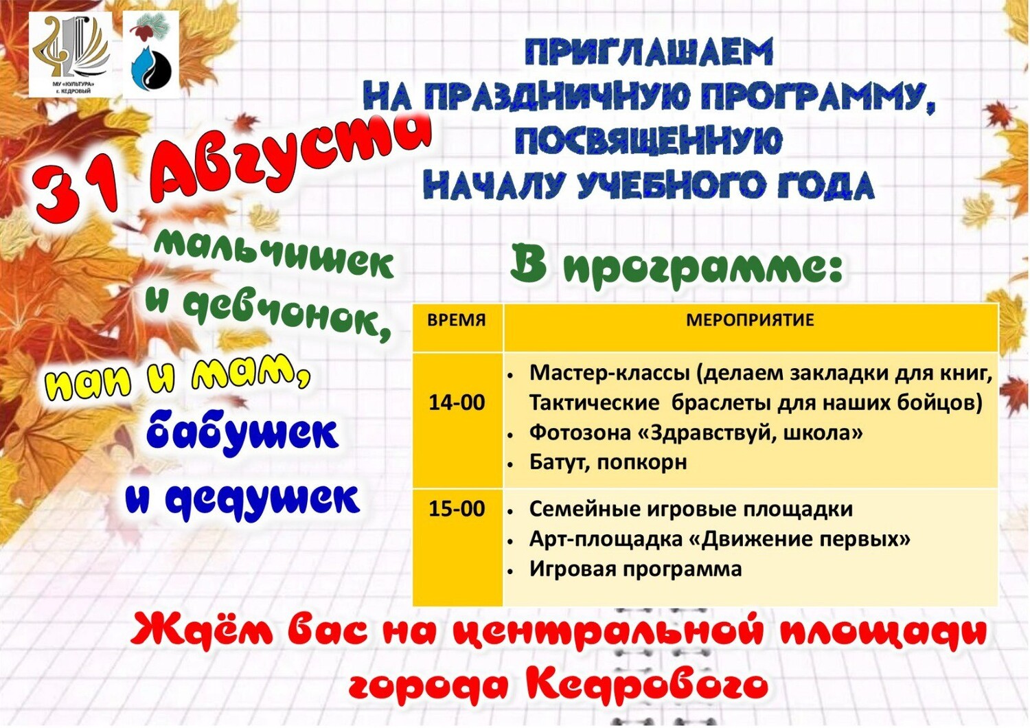 Ждём вас 31 августа в 14:00 на центральной площади города Кедрового.