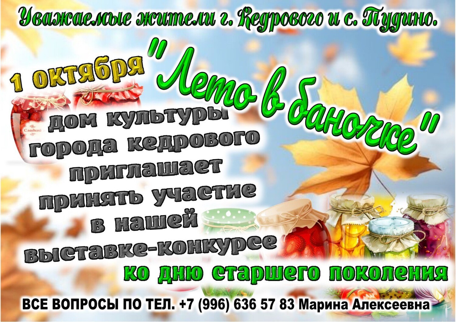 Дом культуры г.Кедрового приглашает вас на выставку-конкурс "Лето в баночке"!
