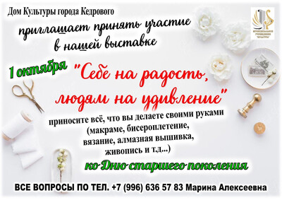 1 октября в ДК г.Кедрового состоится выставка "Себе на радость, людям на удивление"