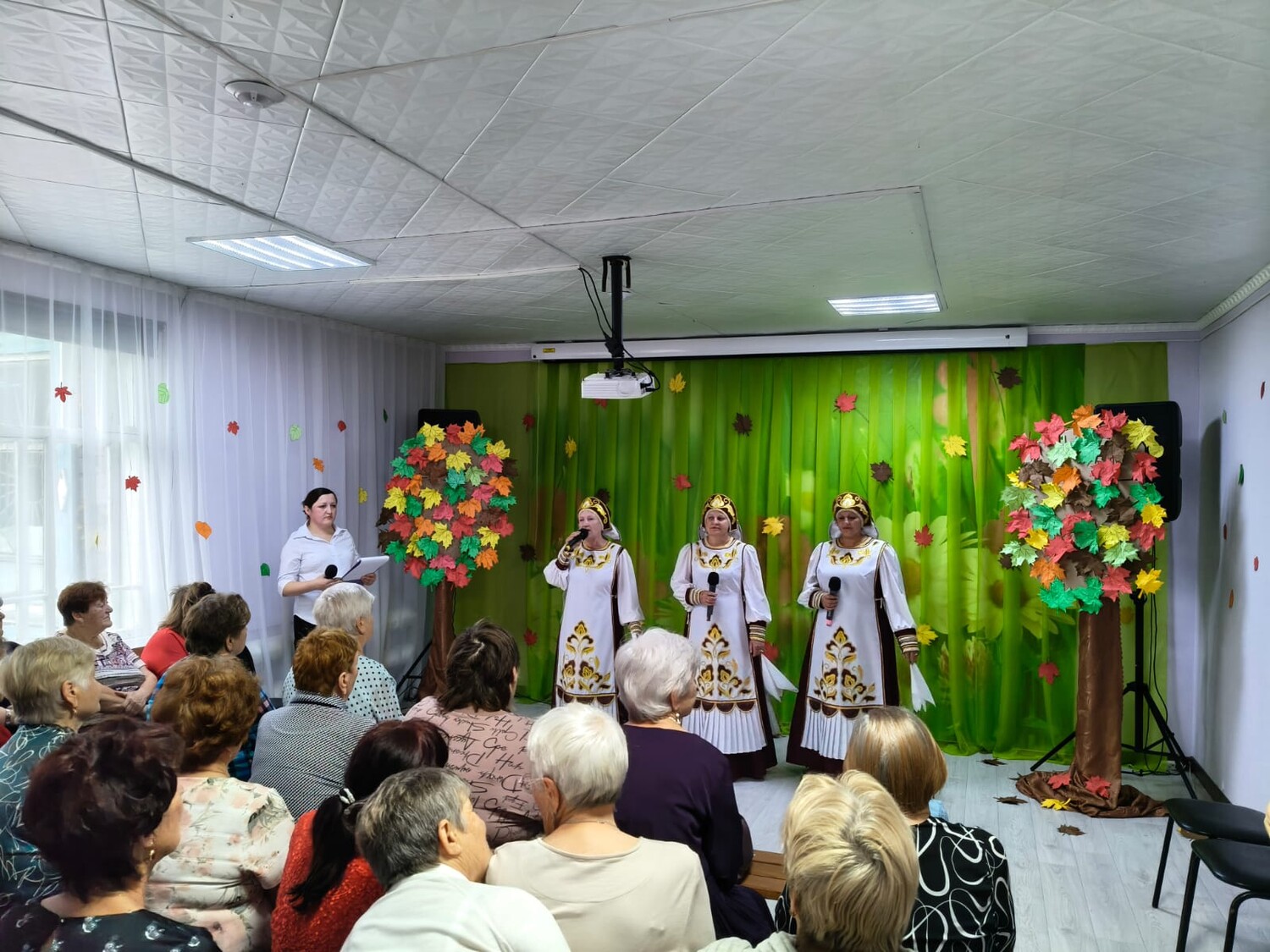 Торжественный концерт под названием «Ваших лет золотые россыпи» открыл музыкальный номер в исполнении солистки Елены Клоос, исполнившей песню о России. Далее прозвучали тёплые поздравления в адрес собравшихся гостей от Главы города Кедрового Нелли Александровны Соловьевой. После официальной части зрители насладились разнообразной культурной программой, включающей в себя песни,