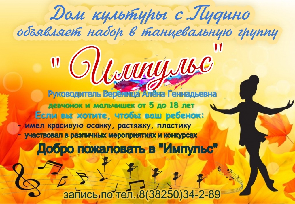Дом культуры села Пудино приглашает на танцевальную ритмику!
