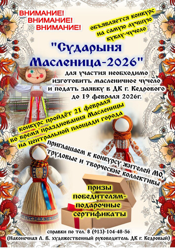 Приглашаем всех мастеров и мастериц, любителей творчества и народных традиций принять участие в ярком конкурсе «Сударыня Масленица – 2026»!