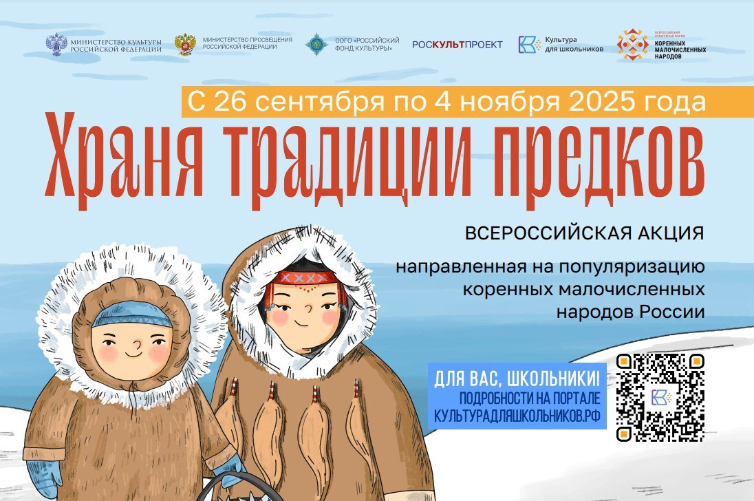 26 сентября 2025 года стартует всероссийская акция «Храня традиции предков». Для участия в акции ребятам необходимо подготовить работу в одной или нескольких из предложенных номинаций в формате эссе, видеоролика или проекта-презентации на выбор и оставить свою заявку на участие в личном кабинете на портале «Культурадляшкольников.РФ».