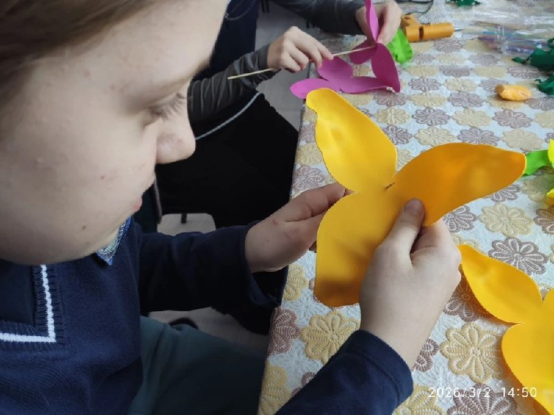 Учащиеся Пудинской школы с удовольствием создавали своими руками символ весны и женственности. Без труда они освоили тонкости работы с фоамираном – материалом, который благодаря своей пластичности и способности принимать любую форму, позволяет добиться поразительной схожести с живыми цветами.