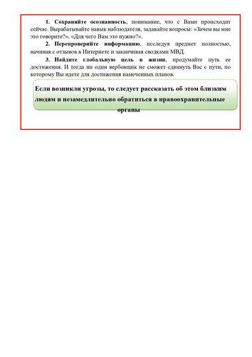 ПОМНИ! Если возникли угрозы вербовки, то следует рассказать об этом близким людям и незамедлительно обратиться в правоохранительные органы.