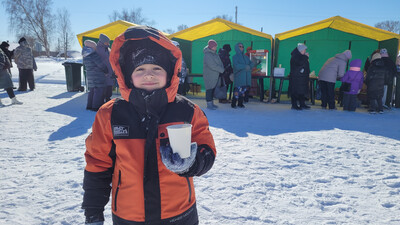 Разнообразие угощений радовало глаз и желудок: ароматная уха, тонкие блинчики, хрустящий попкорн, порционные пирожные и согревающий чай были доступны каждому.