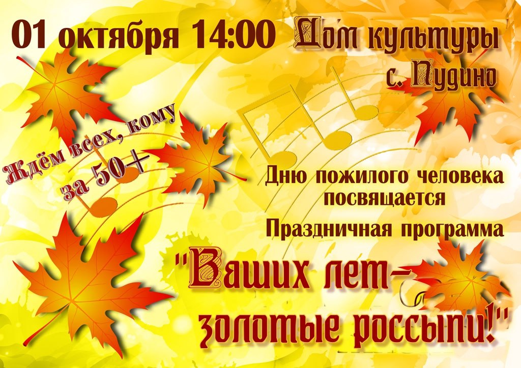 "Ваших лет золотые россыпи" - под таким названием пройдёт праздничная программа 1 октября в 14:00 час. в СДК. Сердечно приглашаем всех, кому немножечко за 50